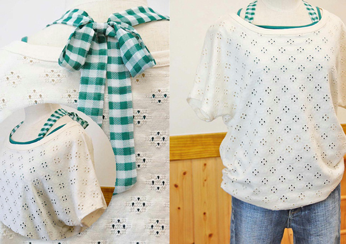 ドルマン風で裾に丸みの出る脇シャーリングにしてみました。