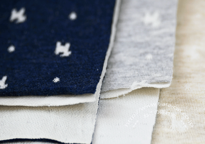 生地の縫製には、必ずニット用の針と糸をご使用ください。裁断前に水通しをお勧めいたします。