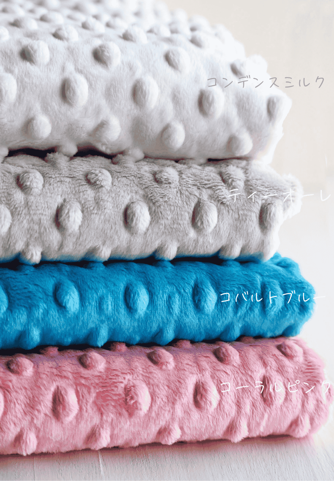 色は コンデンスミルク、ティオーレ、コバルトブルー、コーラルピンクです
